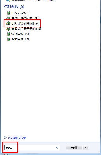 1、點(diǎn)擊電腦桌面左下角的“開始”按鈕,隨后在搜索框中輸入“pow”,在上方選擇“更改計(jì)算機(jī)睡眠時(shí)間”。如下圖所示: