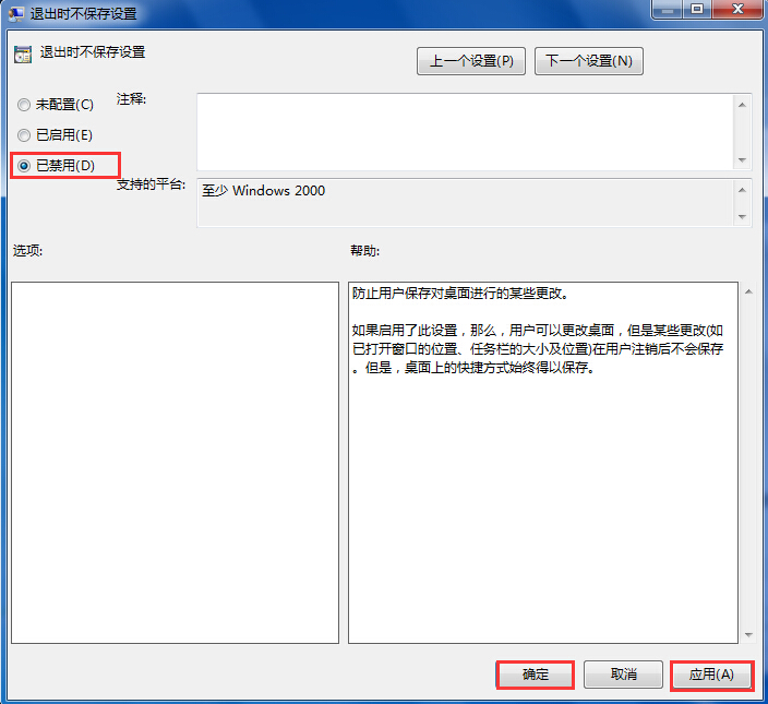 3、在彈出的窗口中,點擊左上角的“已禁用”,然后點擊“應(yīng)用--確定”即可,如圖所示: