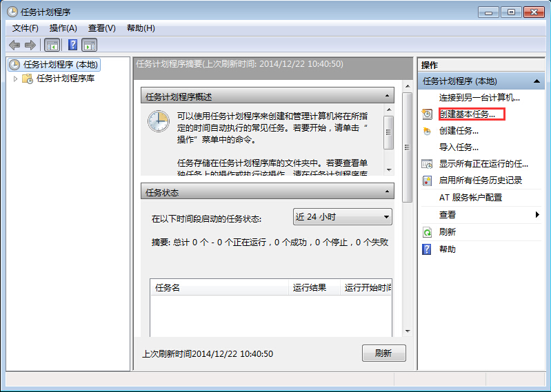 4、在計劃任務窗口中,點擊“創(chuàng)建基本任務”,如圖所示: