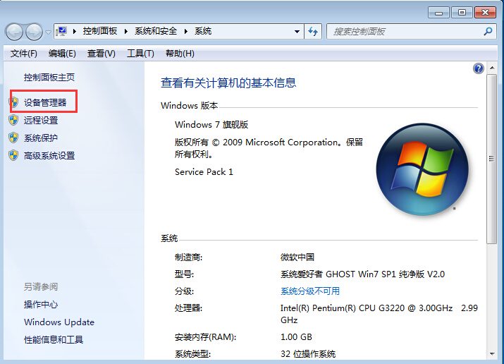 2、在新窗口中點擊“設(shè)備管理器”,如圖所示: