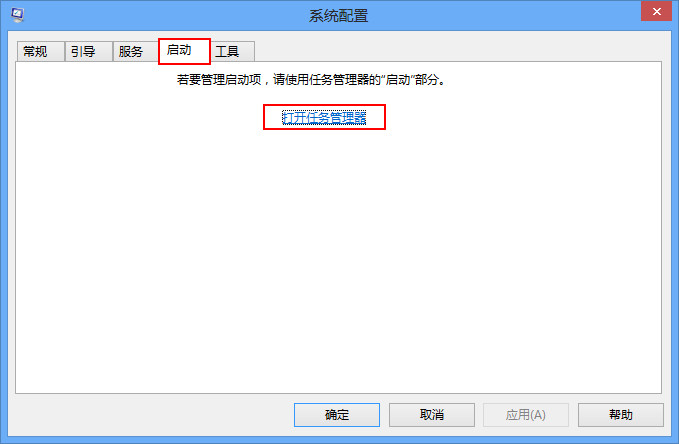 2、在系統(tǒng)配置中點擊“啟動”選項,然后再按下“打開任務管理器”選項,如下圖所示: