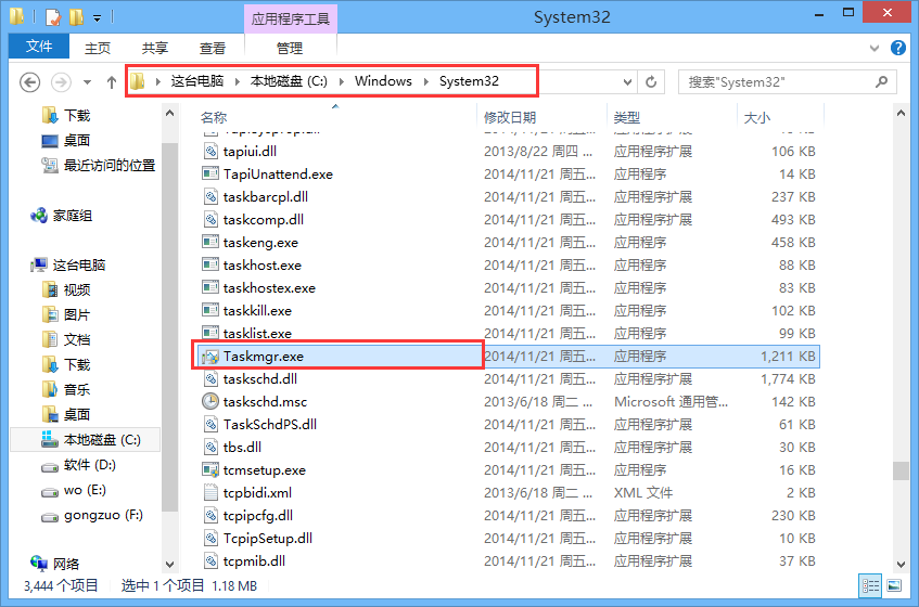 1、在C盤中打開Windows/system32文件夾,找到taskmgr.exe文件,如圖所示: