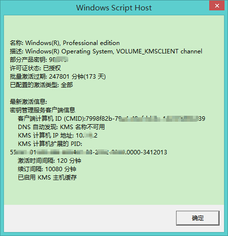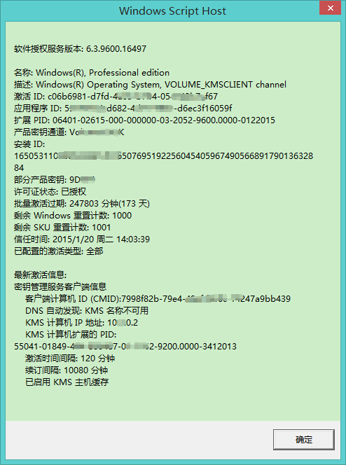 5、另外在運行窗口中輸入slmgr.vbs -dli也可以查看到系統(tǒng)版本級一些產品密鑰信息,如圖所示: