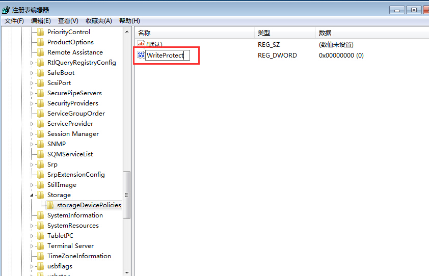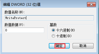 5、雙擊打開WriteProtect,將數(shù)值改成十六進制的0,點擊確定,如圖所示: