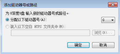 5、在新彈窗中點(diǎn)選“分配以下驅(qū)動(dòng)器號(hào)”,在右側(cè)可選擇盤符,最后點(diǎn)擊“確定”,如圖所示:
