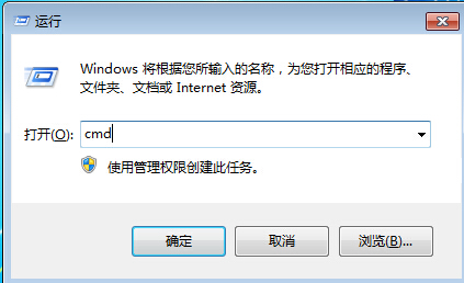 1、打開(kāi)運(yùn)行窗口(按win+r),輸入cmd,回車(chē)進(jìn)入,如圖所示: