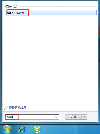 1、打開開始菜單,輸入cmd,點擊進入,如圖所示: