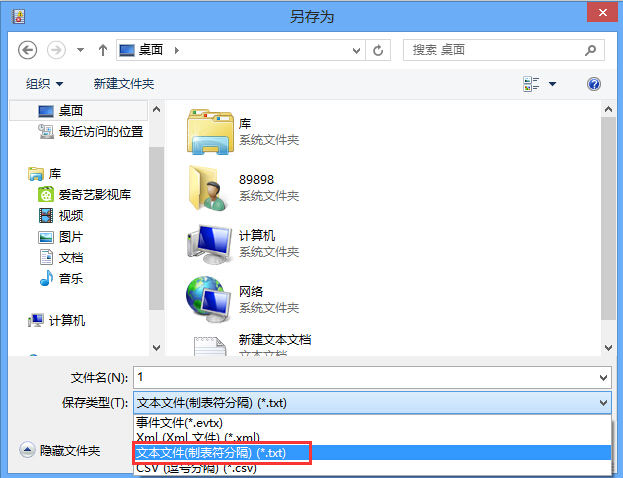 3、隨后彈出儲(chǔ)存窗口,我們點(diǎn)擊“保存類型”,一般存為txt文本比較容易打開,然后取個(gè)文件名即可,點(diǎn)擊“保存”,如圖所示:
