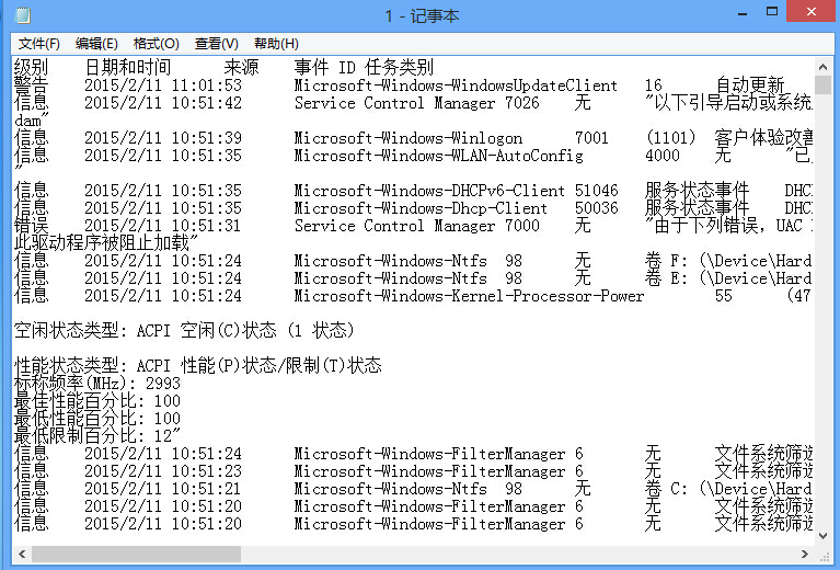 4、在保存的位置里找到剛才保存的文件,打開后便可以了解詳細(xì)的系統(tǒng)運(yùn)行記錄,如圖所示: