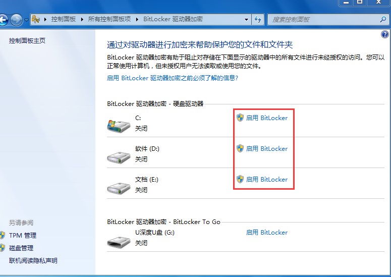 現(xiàn)代社會(huì),互聯(lián)網(wǎng)信息傳播速度極快,而我們很多個(gè)人信息和隱私又儲(chǔ)存于電腦之中,因此我們更需要加強(qiáng)對(duì)電腦中信息的保護(hù),今天就來(lái)為大家介紹下如何在win7系統(tǒng)中開啟磁盤加密,防止我們儲(chǔ)存在電腦磁盤的信息泄露。