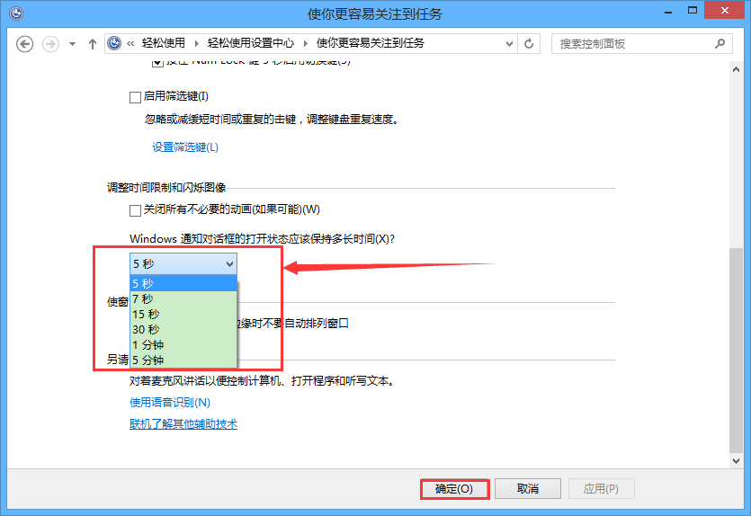 以上便是win8.1中設(shè)置通知框顯示時間的方法,如果用戶覺得系統(tǒng)提示顯示的時間太短了,就可以按照本文的方法進行設(shè)置,希望能幫助到大家。